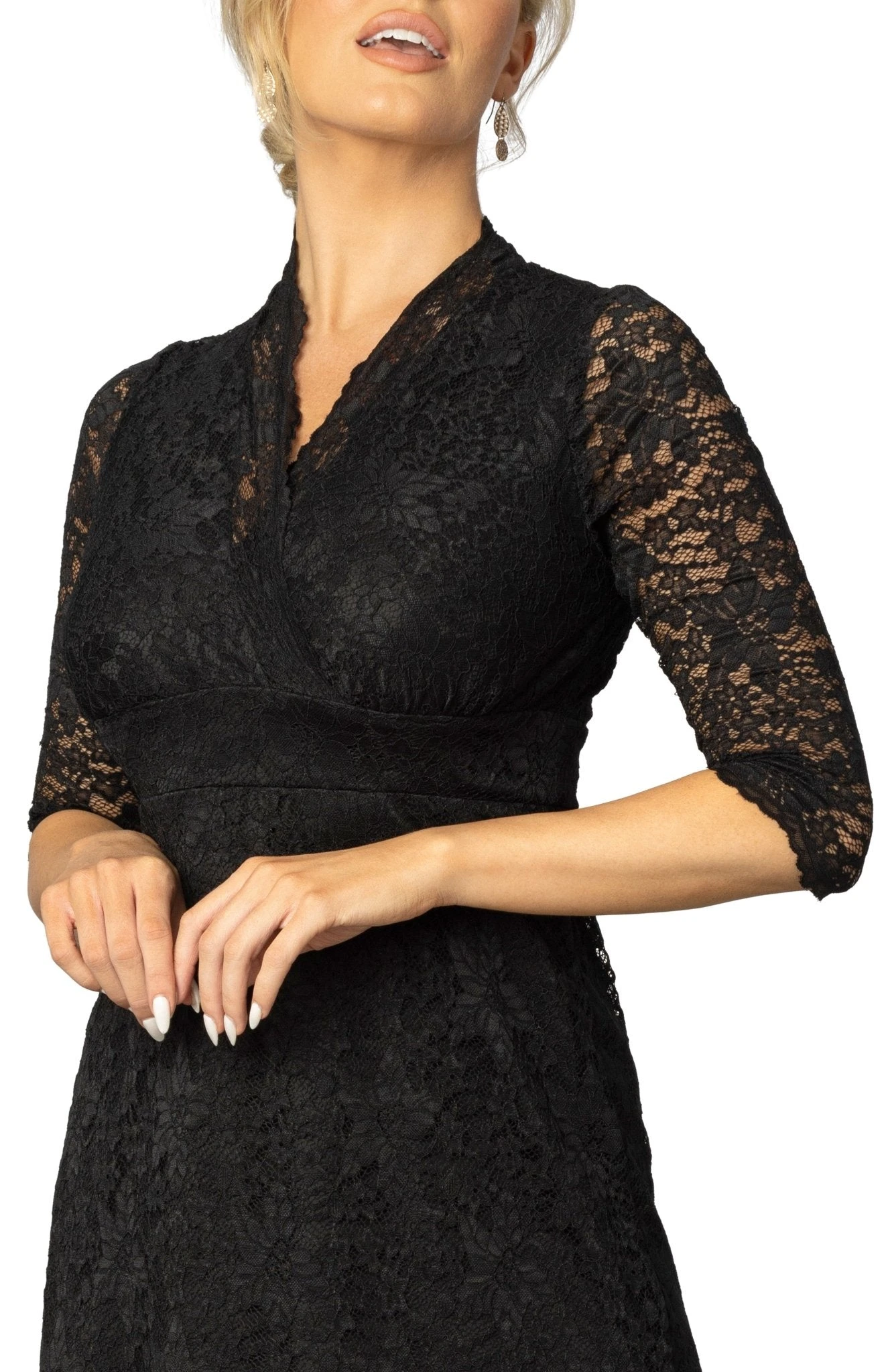 - Versatile 3/4 Sleeves: Experience the perfect balance of coverage and style with sheer lace sleeves that are ideal for year-round wear.