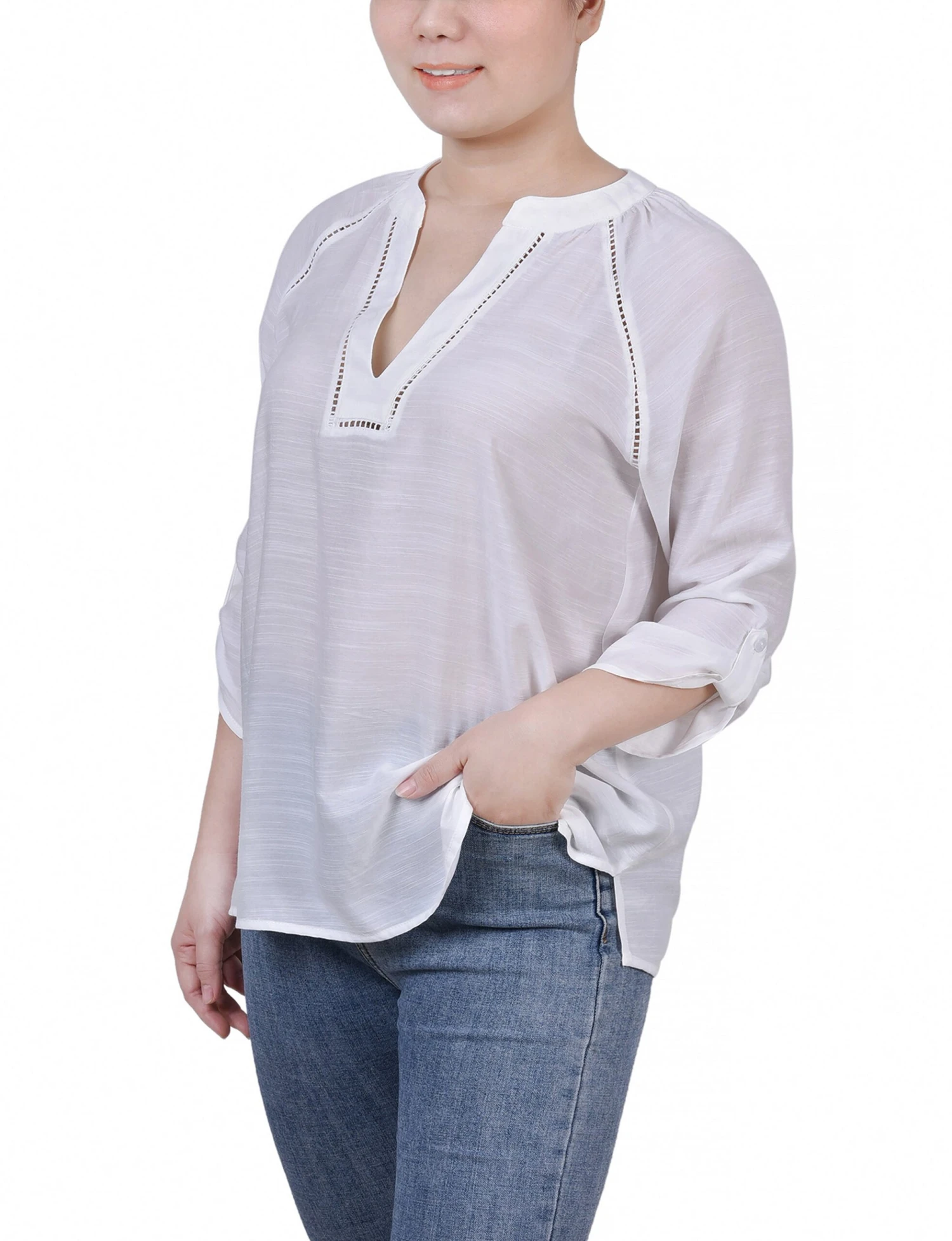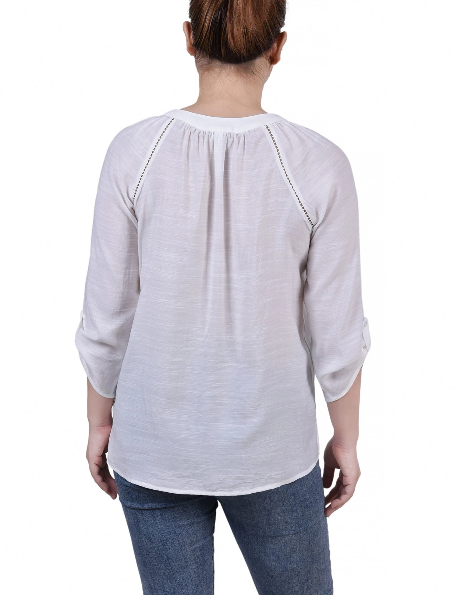 - Artisanal Inset Trim: Intricate inset detailing offers a refined aesthetic that sets this top apart from basic basics.