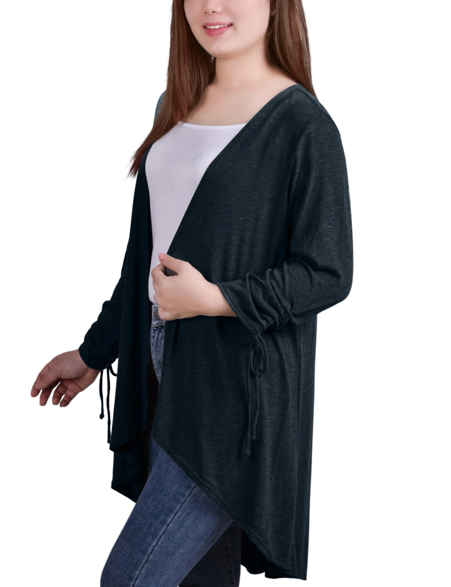 - Elegant Rouched Detailing: The unique rouched sleeves provide a sophisticated texture that elevates this piece above basic cardigans.