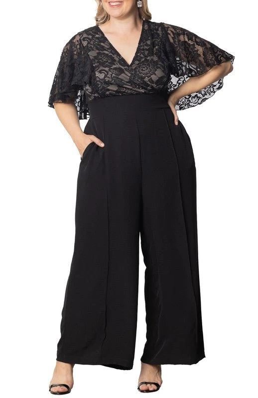 Step into the spotlight with the Kiyonna Helena Lace Jumpsuit, a signature piece from our collection designed to celebrate the modern woman’s curves. This elegant ensemble offers a chic and refreshing alternative to the traditional evening gown, blending romantic lace with a contemporary silhouette to ensure you feel as confident as you look at your next formal event.