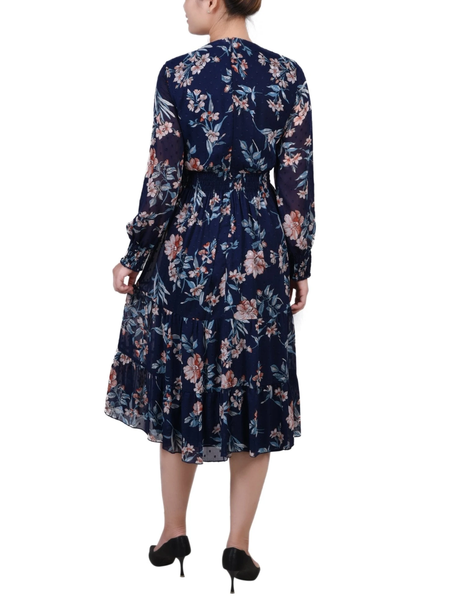 Stop choosing between professional attire and evening style. This navy chiffon dress offers a sophisticated silhouette that transitions seamlessly from a busy day at the office to a celebratory dinner, ensuring you look polished and feel confident all day long.