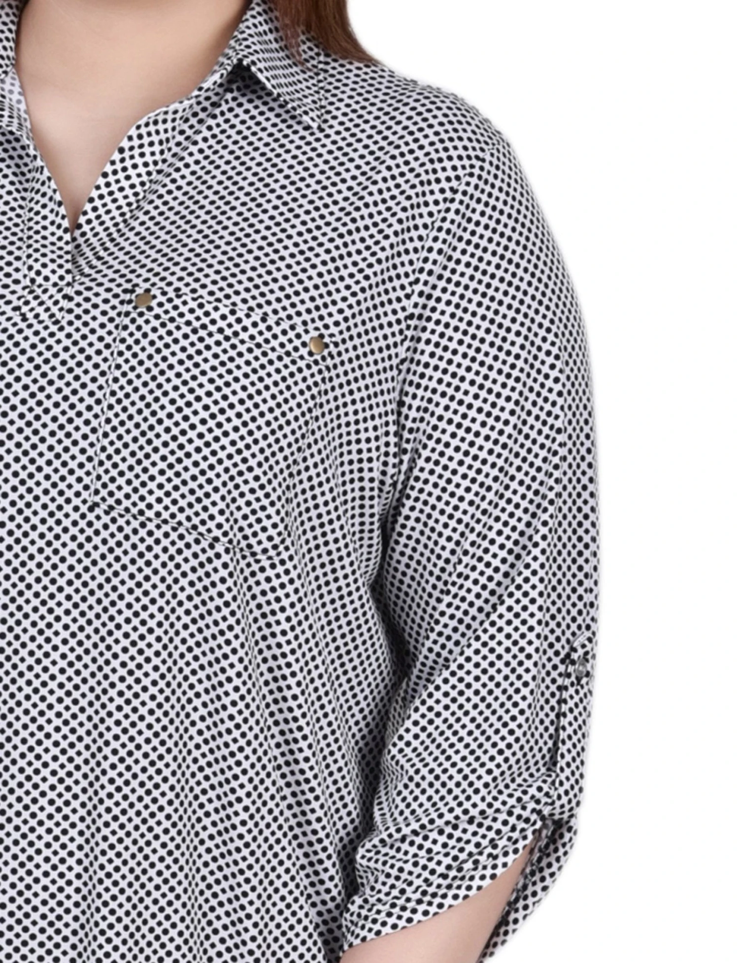 - Adjustable Roll Tab Sleeves: Versatile 3/4 sleeves feature a roll-tab design, allowing you to easily adjust the length for comfort or style preference throughout the day.