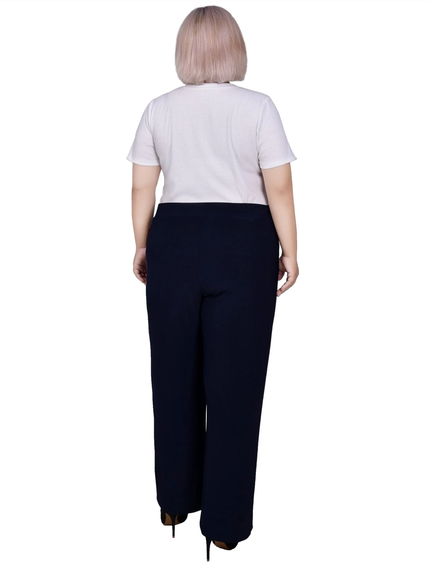 Elevate your daily wardrobe with the NY Collection Plus Size Wide-Leg Pants, where sophisticated tailoring meets the comfort of your favorite loungewear. Part of our signature collection, these pants are designed to provide a sleek, streamlined look without the restriction of traditional closures, making them a versatile staple for any modern wardrobe.
