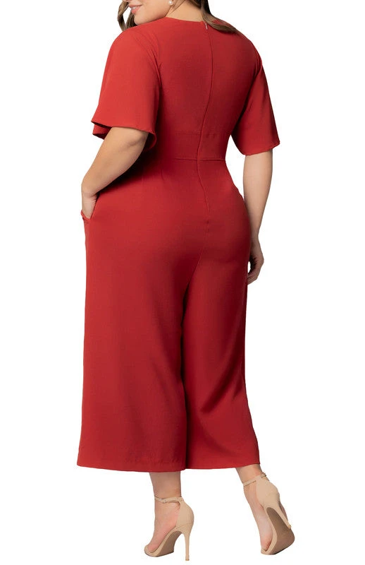 Indulge in the effortless charm of the Paprika Evelyn collection. This plus-size cropped wide-leg jumpsuit is meticulously crafted to celebrate your silhouette, blending high-fashion aesthetics with all-day comfort for a truly versatile wardrobe staple.