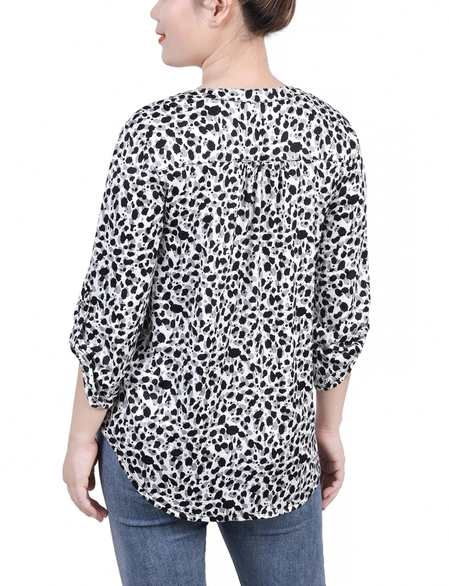 - Sleeve Style: 3/4 Length with Roll-Tab functionality