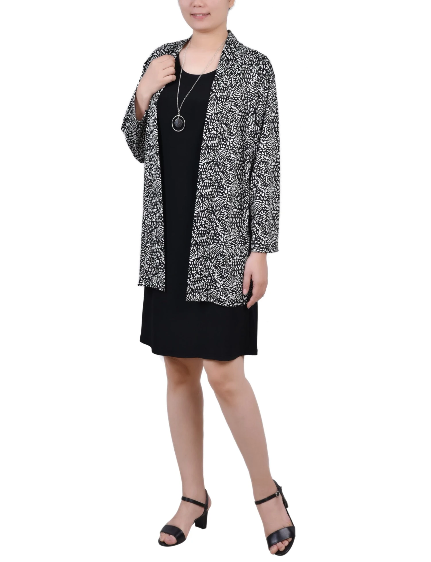 Finding a complete, well-proportioned outfit for petite frames shouldn’t be a challenge. This elegant black dress set eliminates the stress of styling by providing a coordinated look that transitions seamlessly from the office to dinner, ensuring you look polished without the hassle of matching separate pieces.