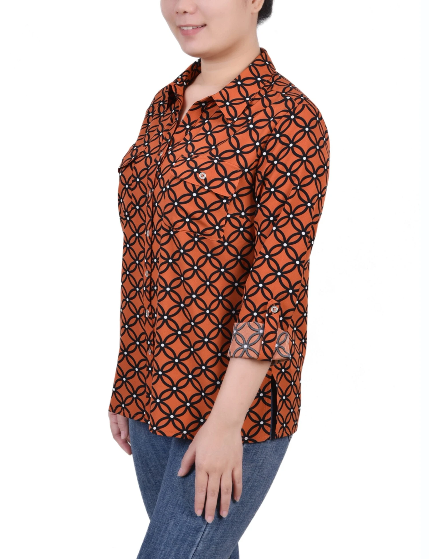 - Sleeve Type: 3/4 Roll Tab