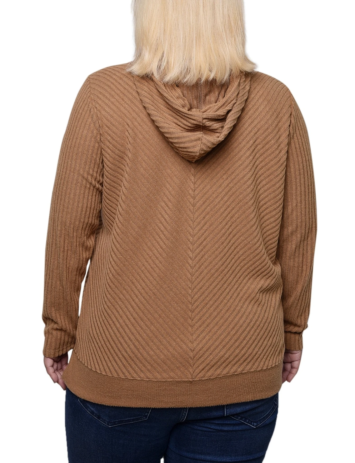 Don’t let the cold weather compromise your style. This cinnamon-toned ribbed hoodie is the perfect solution for those seeking a balance between ultimate comfort and a flattering, put-together look. Whether you’re running errands or relaxing at home, this hoodie provides the immediate warmth and soft texture you need to tackle chilly days with confidence.