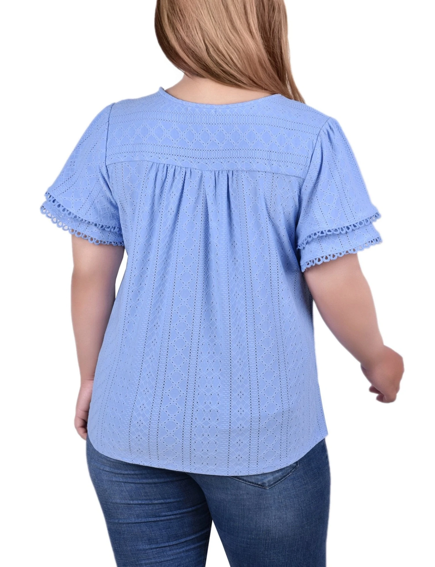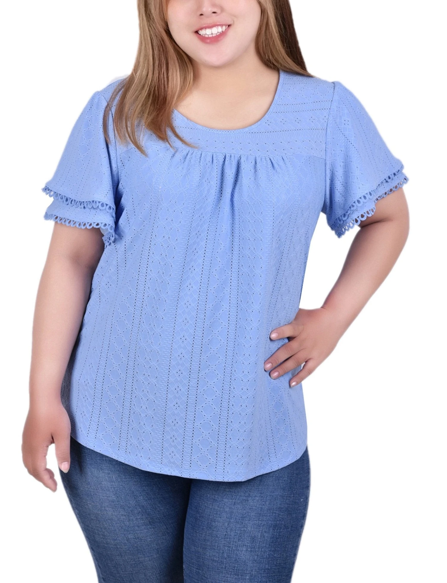 Transform your daily rotation with a top that balances modern edge and timeless comfort. This knit eyelet top is the perfect solution for those looking to elevate their look without sacrificing ease, offering a sophisticated silhouette specifically designed for plus-size proportions.