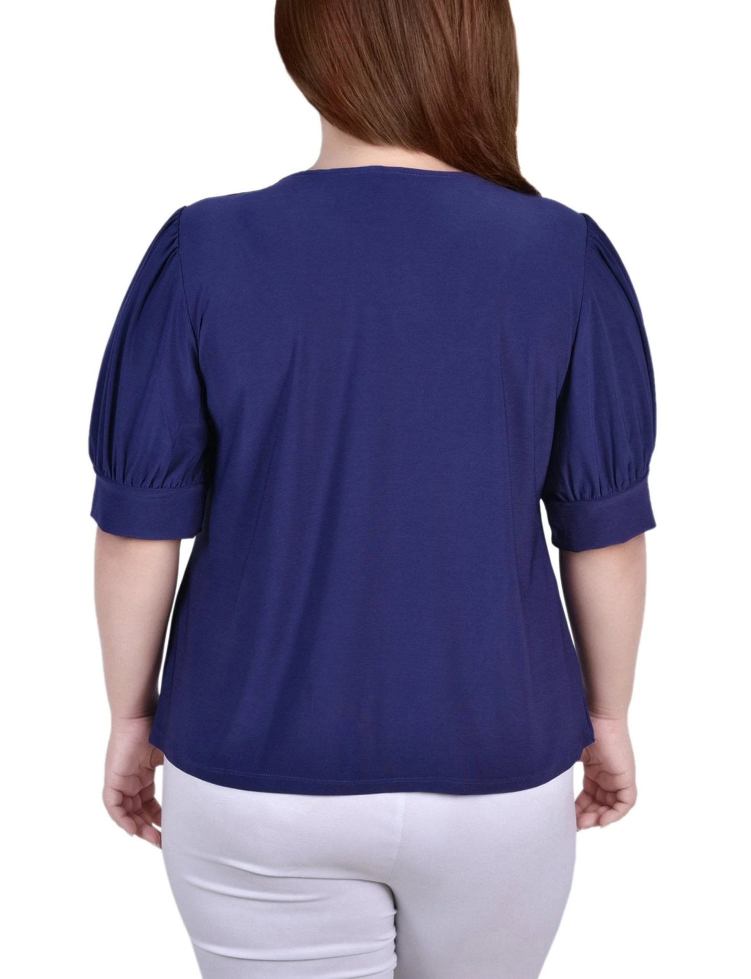 Finding the perfect balance between professional polish and casual comfort can be a challenge. This Patriot Blue balloon sleeve top solves that dilemma instantly. Designed with a sophisticated silhouette and eye-catching hardware, it elevates your everyday look without sacrificing the softness of your favorite tee.