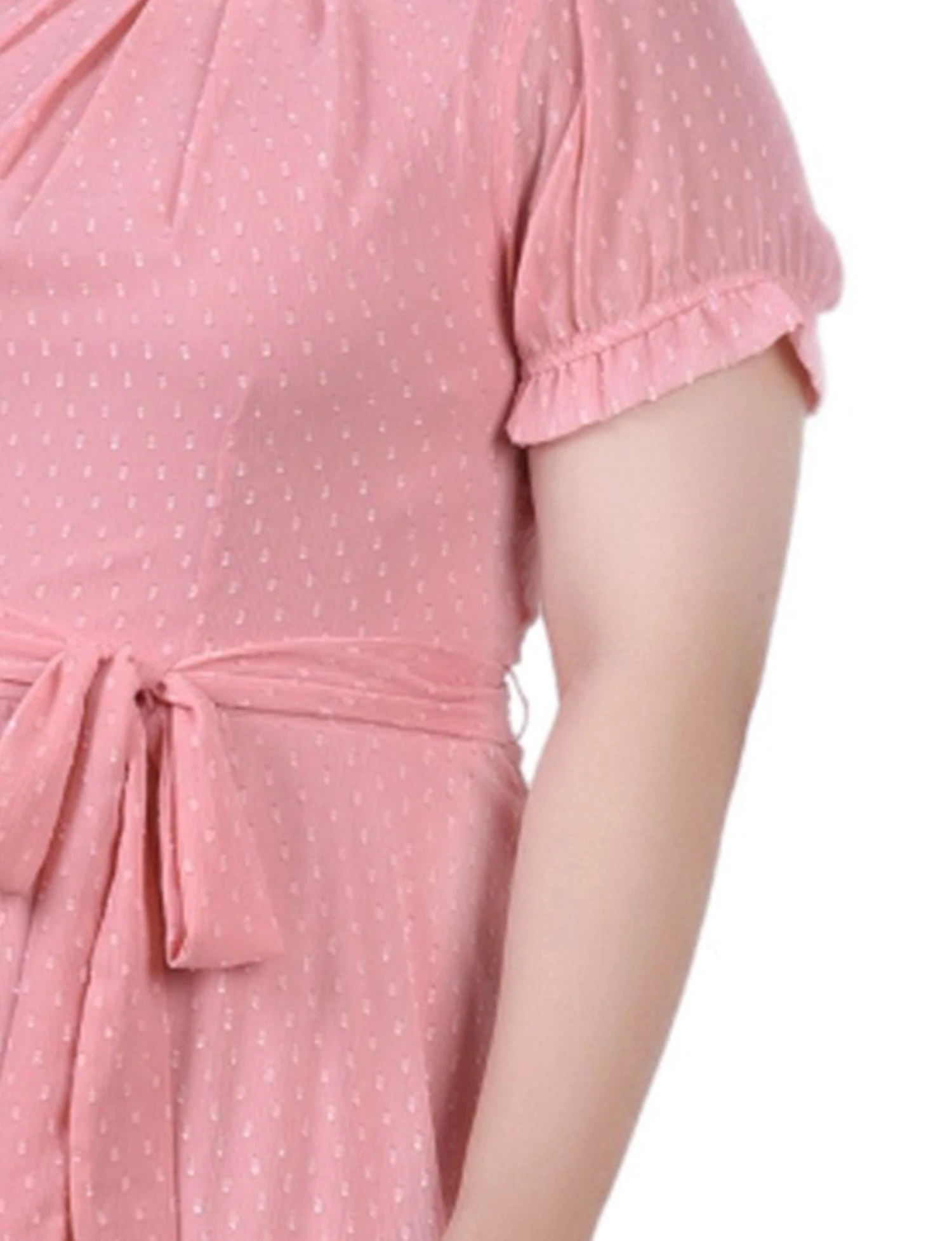 Finding the perfect balance between comfort and style shouldn’t be a challenge. This stunning plus-size Swiss dot dress is designed to make you feel confident and radiant, whether you are attending a wedding, a garden party, or a special dinner. The soft Mellow Rose color and delicate texture create an effortlessly chic look that transitions perfectly from day to night.