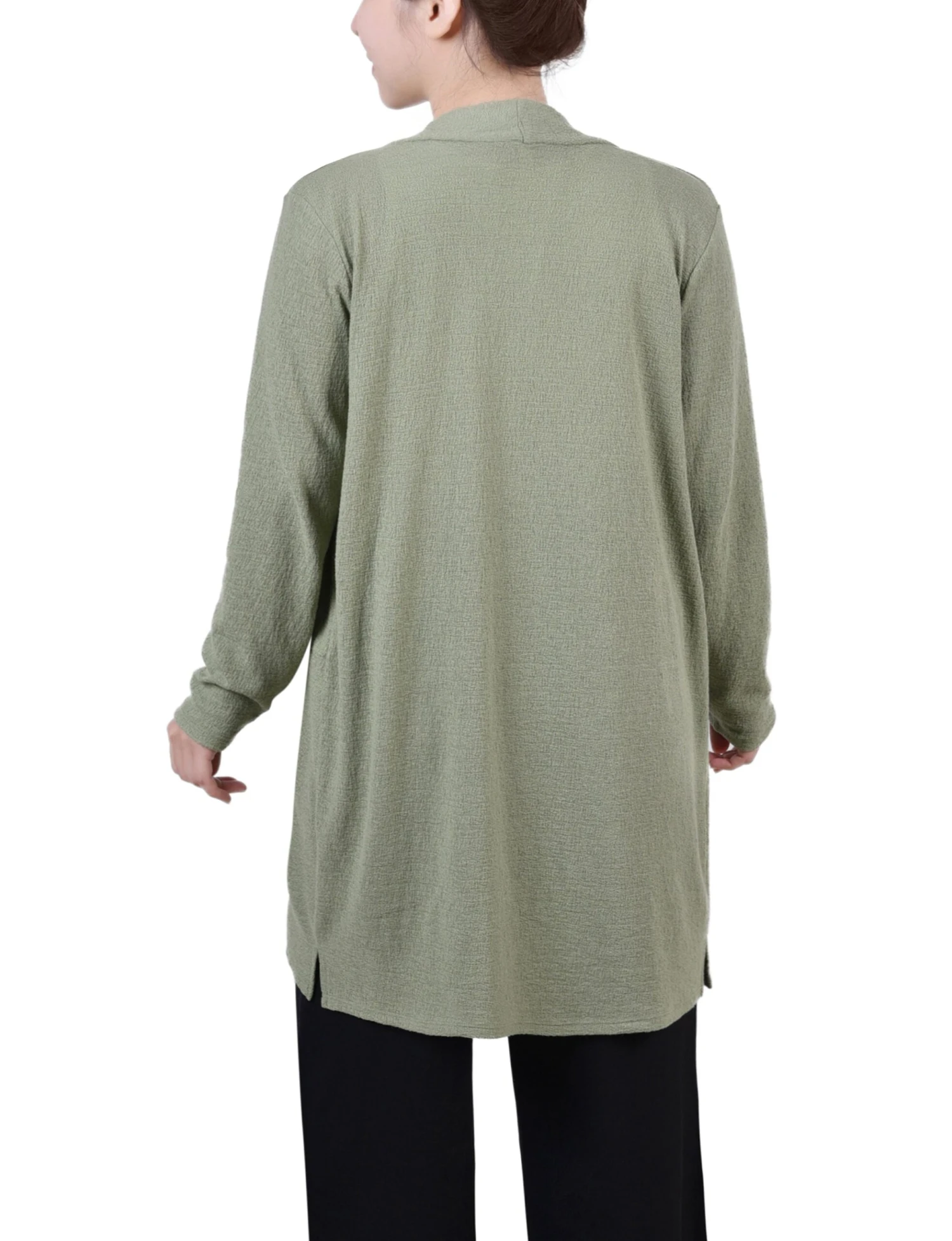 Finding the perfect layer that fits a petite frame shouldn’t be a struggle. This sage green knee-length cardigan is designed specifically for petite proportions, offering a stylish solution to chilly days without overwhelming your figure. Whether you’re heading to the office or relaxing on the weekend, this textured piece adds instant sophistication and warmth to any outfit.