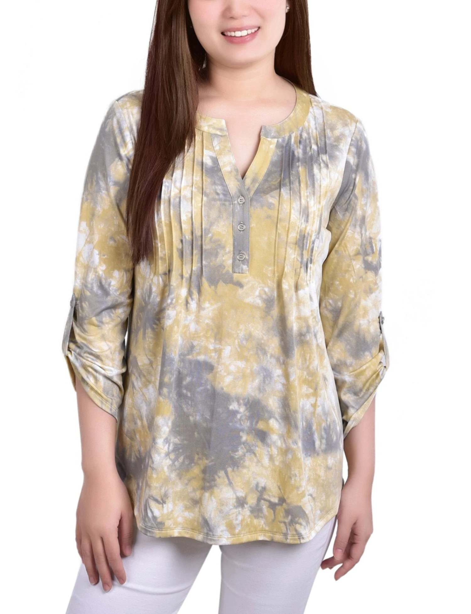 Elevate your everyday wardrobe with a top that effortlessly balances professional polish and casual comfort. Whether you are heading to the office or running errands, this vibrant yellow tie-dye blouse provides a flattering silhouette and a splash of color to brighten your day.