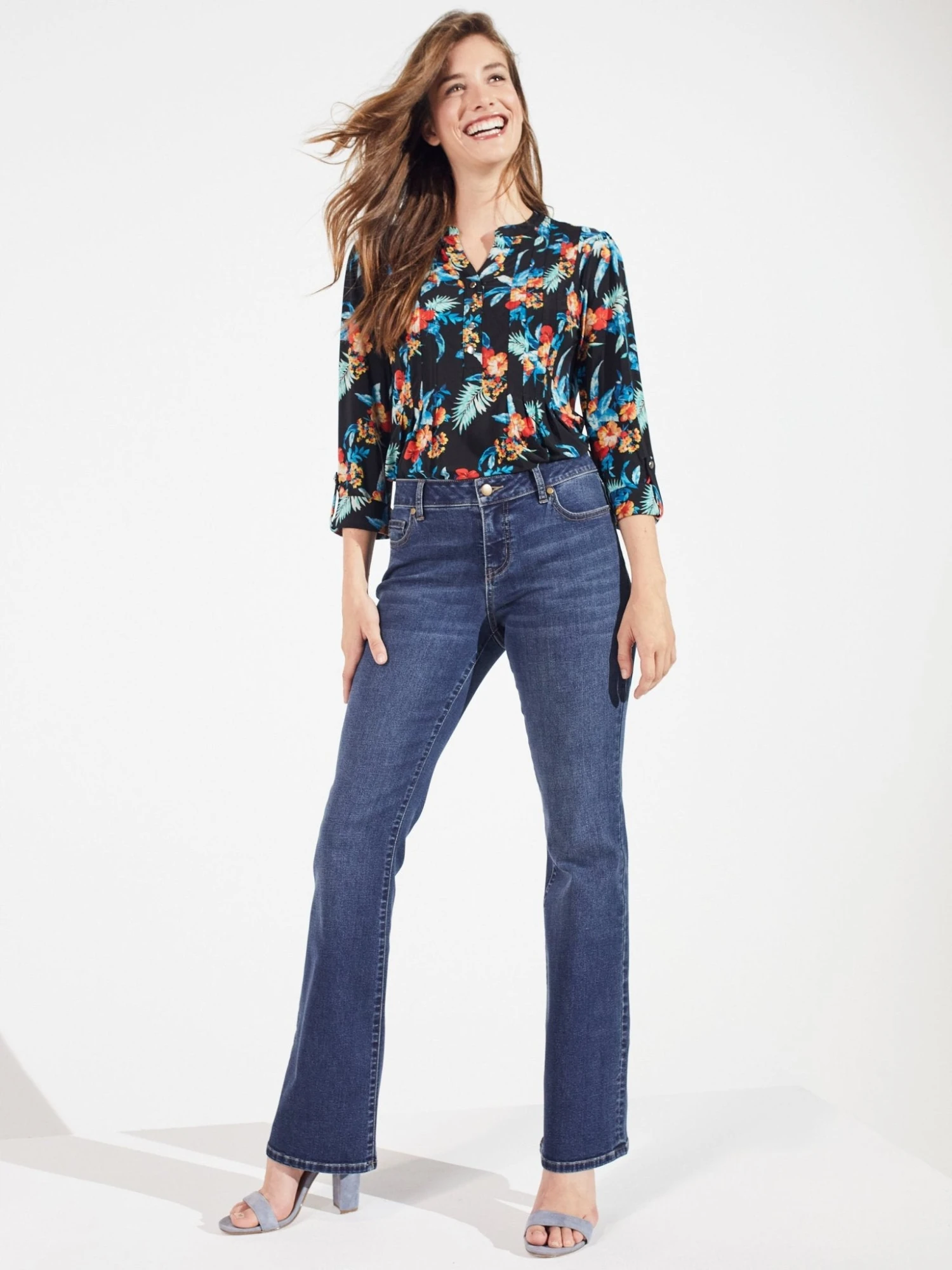 - Classic Bootcut Cut: The timeless 18.5-inch leg opening balances your proportions and elongates the look of your legs.