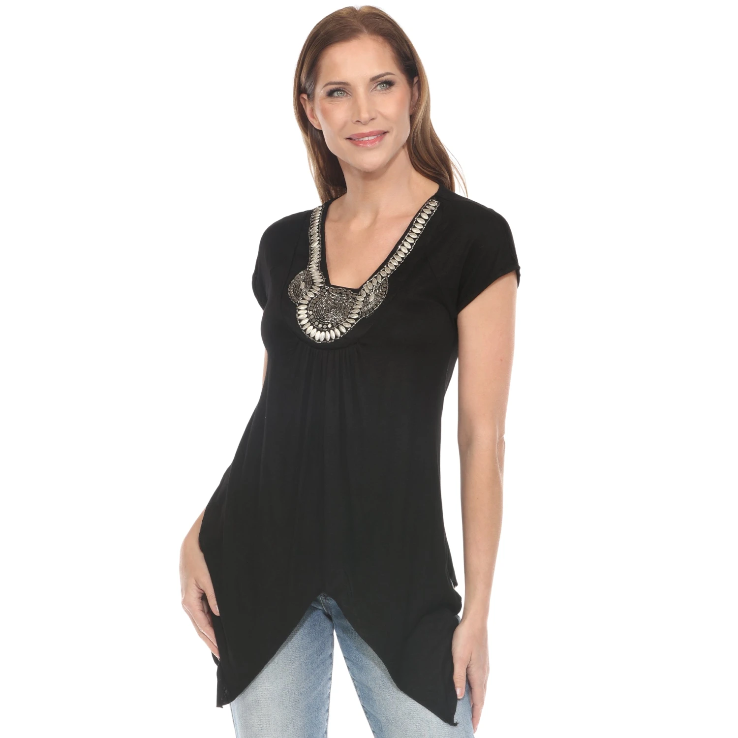 Finding the perfect balance between comfort and style can be a challenge, but this black beaded knit top makes looking polished effortless. Designed for the modern woman, it features an elegant beaded neckline that provides an instant accessory, while the unique angled hem offers a flattering silhouette that moves with you. Whether you are heading to the office or meeting friends for dinner, this top ensures you stay comfortable without sacrificing sophistication.