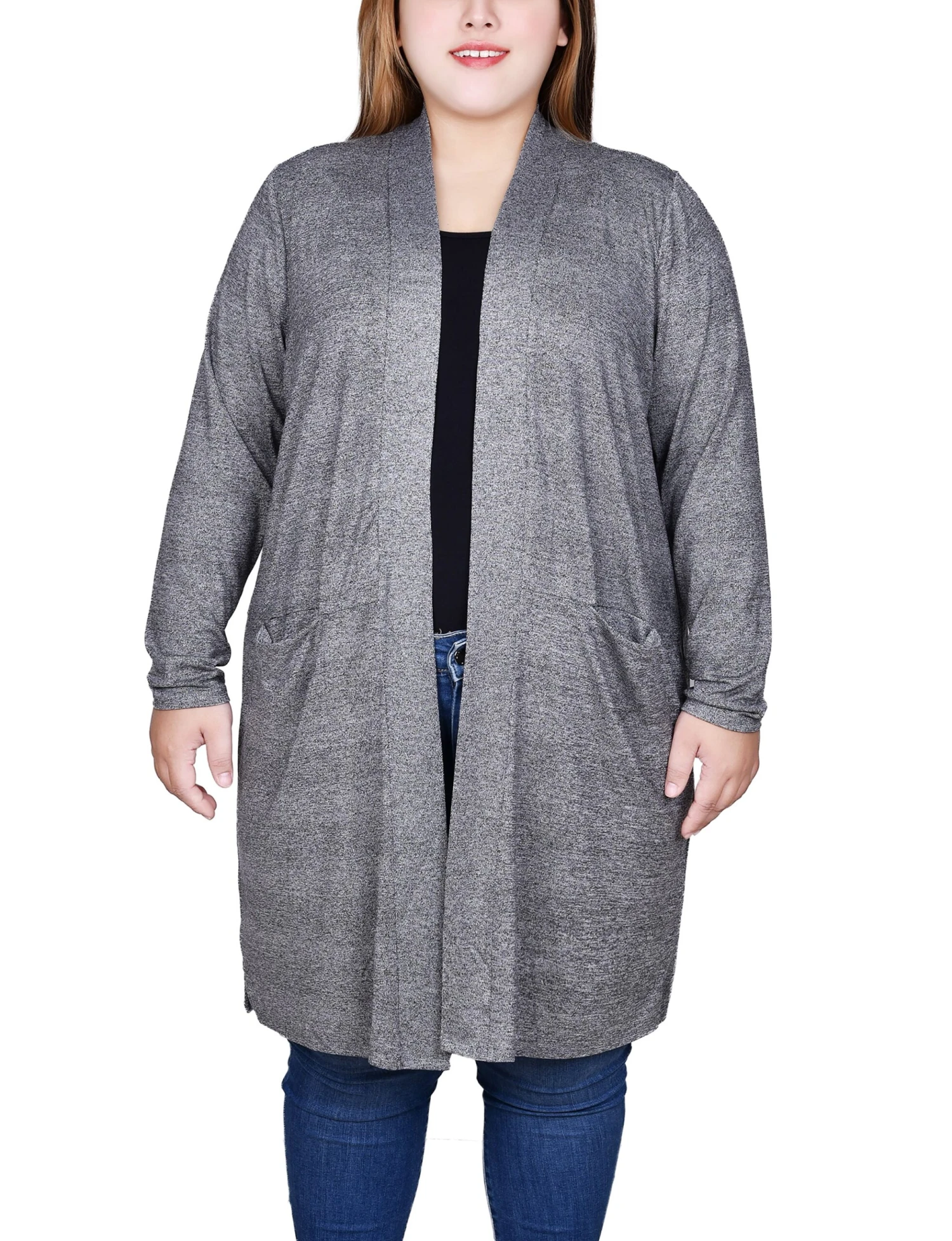 - Flattering Relaxed Fit: Specially tailored for plus-size silhouettes, the open-front design provides a comfortable, non-restrictive drape.
