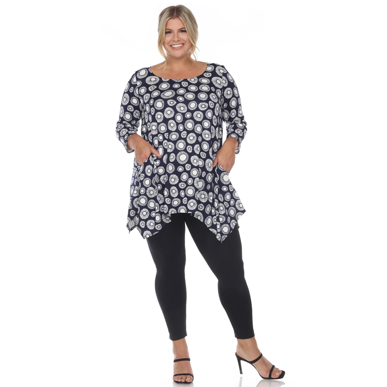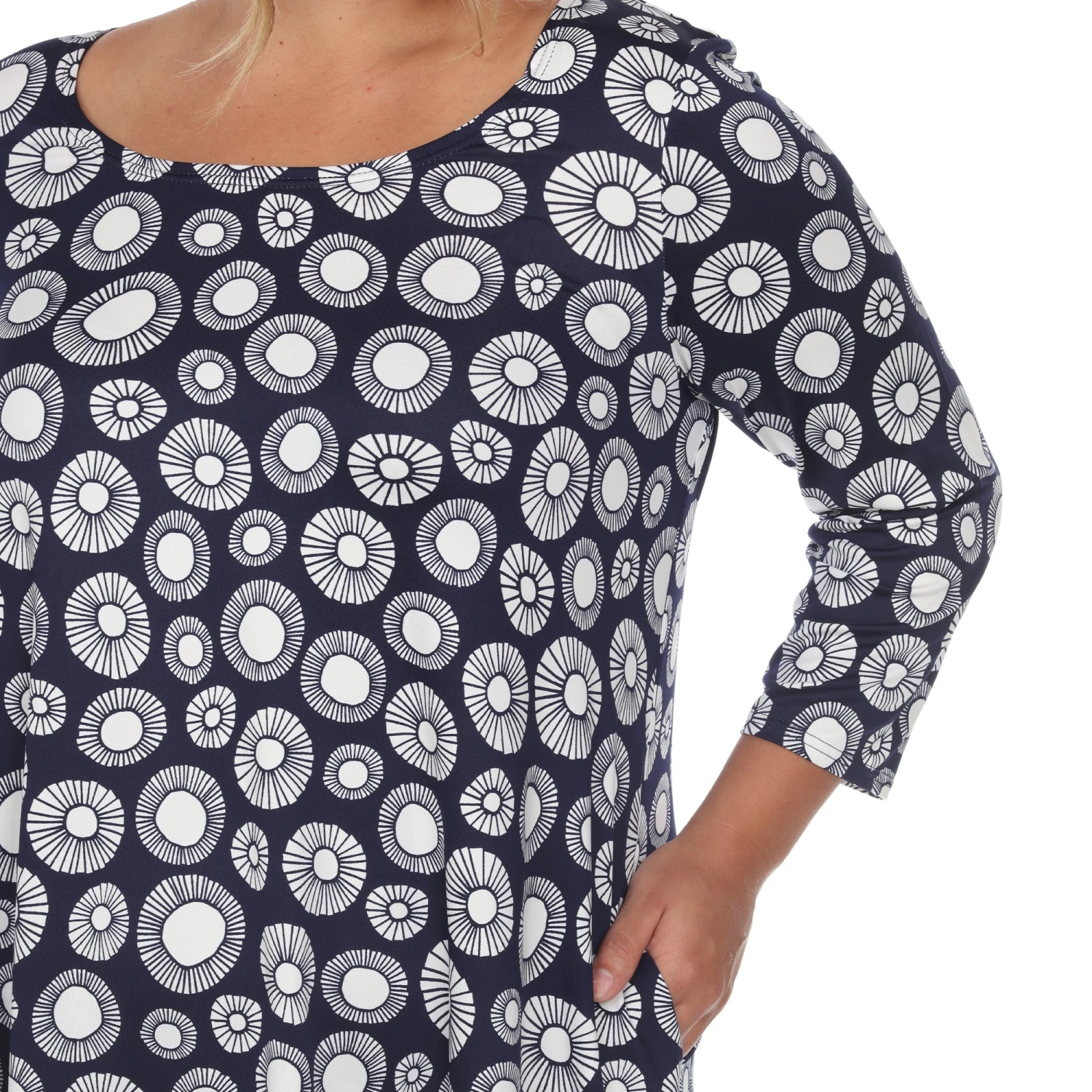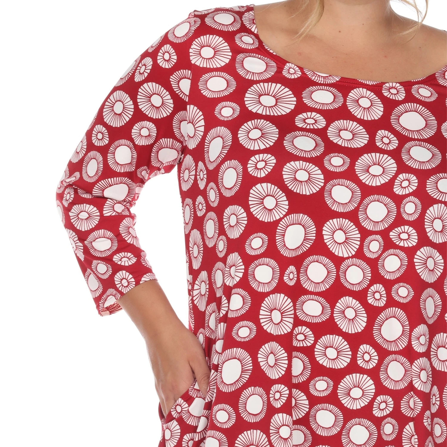 Elevate your wardrobe with a piece that balances bold artistry and functional design. This plus-size tunic features an eye-catching geometric circle print and a flowing silhouette, making it the perfect solution for those seeking a stylish yet comfortable outfit that transitions effortlessly from the office to the weekend.